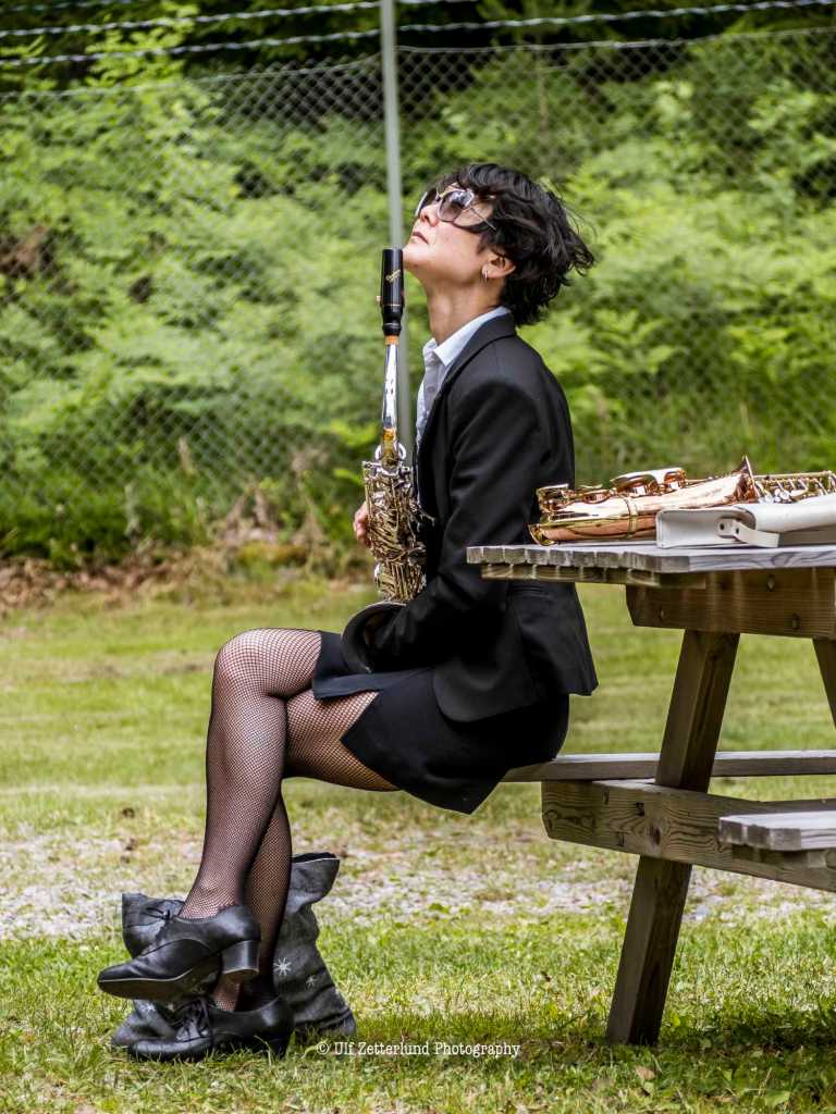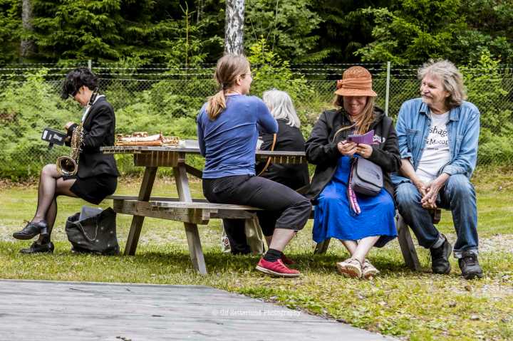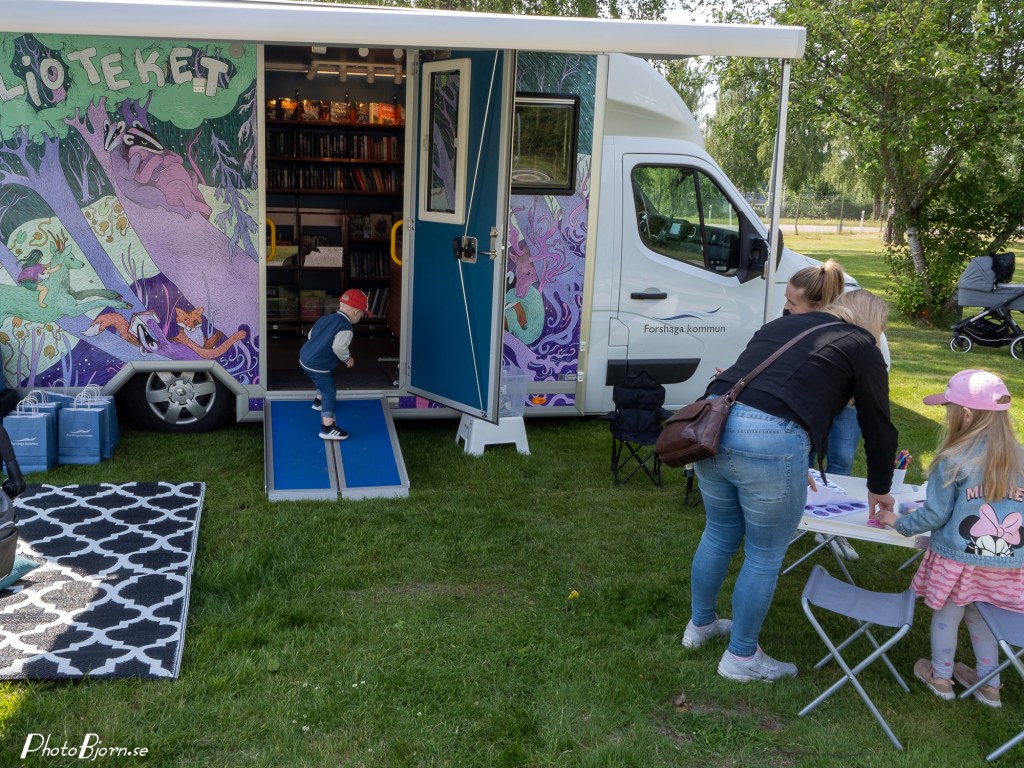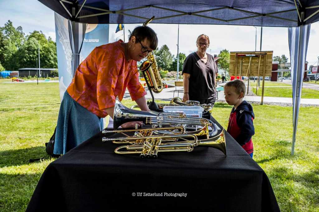 En dag i Forshagaparken med dans, musik, bangolf, fika, Bokbilen och instrument från Uffes blås: